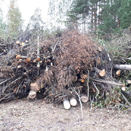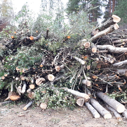 Krūmu zāģēšana un pievešana šķeldošanai.