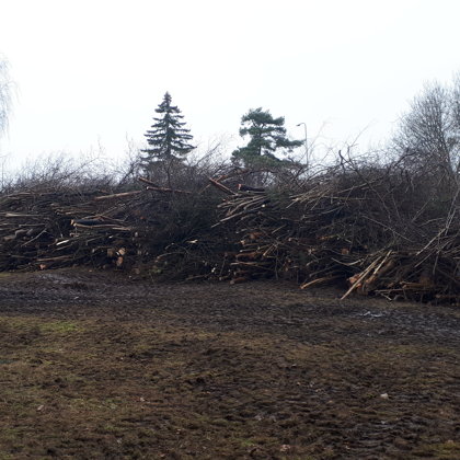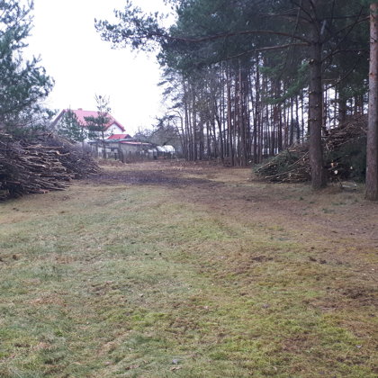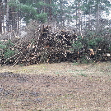 Lazdu pameža izzāģēšana priežu mežā. Zaru izvešana šķeldošanai.